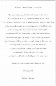 TOP NEWS 平和宣言(英語) 2020年07月01日 NEWS一覧 2026年 学園新年礼拝を行いました2026.01.06 学校法人北星学園におけるカスタマーハラスメントに対する基本方針を策定しました2025.12.17 第26回北星を学ぶ集いを開催しました2025.10.28 【附属高等学校】第20回定期演奏会を開催しました2025.10.20 【女子高等学校】第55回 定期演奏会を開催しました2025.10.03 アーカイブ 2026 2025 2024 2023 2022 2021 2020 2019 2018 2017