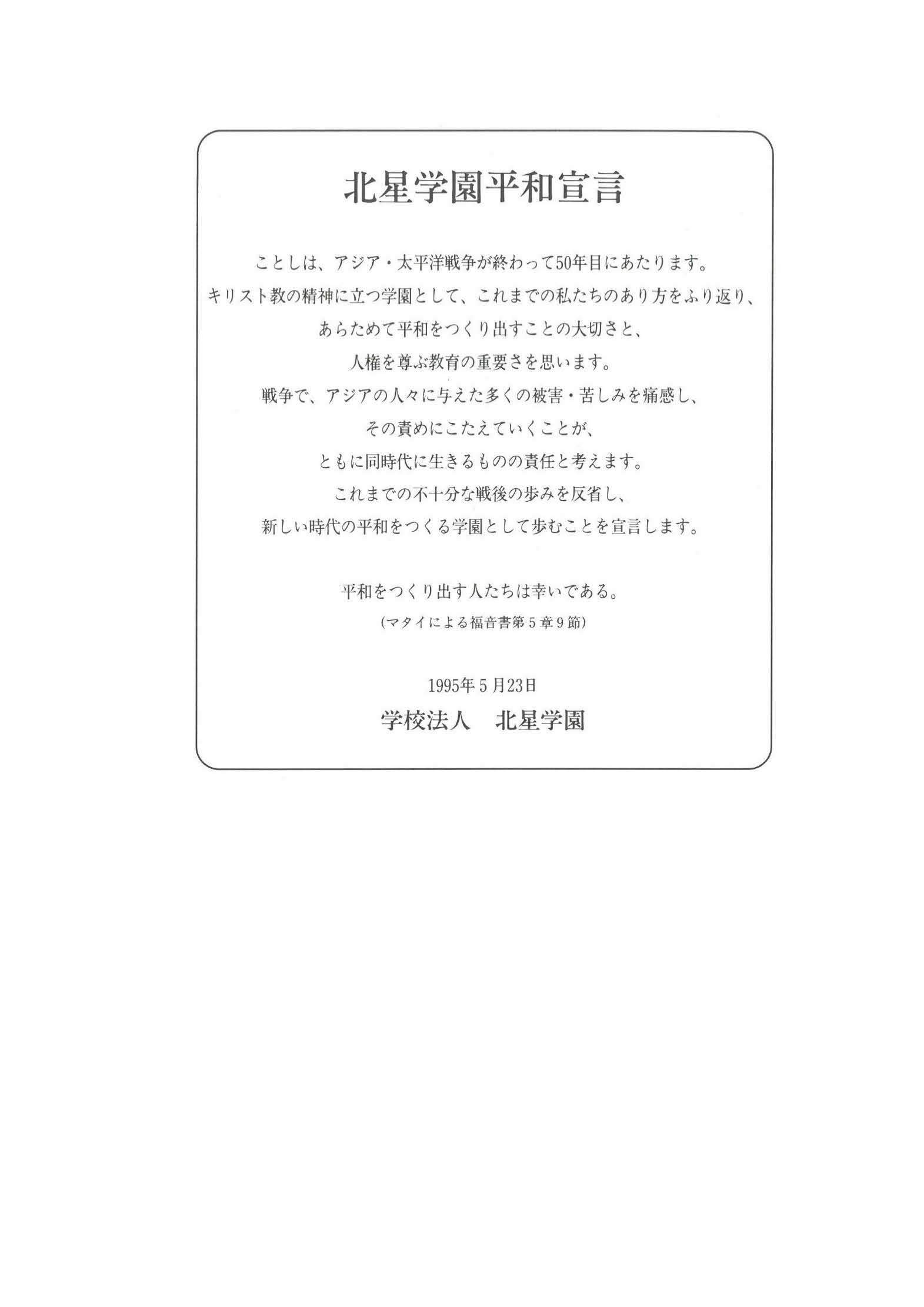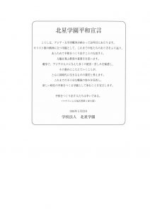 TOP NEWS 日本原水爆被害者団体協議会のノーベル平和賞受賞に寄せて – コピー 2024年11月11日 NEWS一覧 2026年 学園新年礼拝を行いました2026.01.06 学校法人北星学園におけるカスタマーハラスメントに対する基本方針を策定しました2025.12.17 第26回北星を学ぶ集いを開催しました2025.10.28 【附属高等学校】第20回定期演奏会を開催しました2025.10.20 【女子高等学校】第55回 定期演奏会を開催しました2025.10.03 アーカイブ 2026 2025 2024 2023 2022 2021 2020 2019 2018 2017