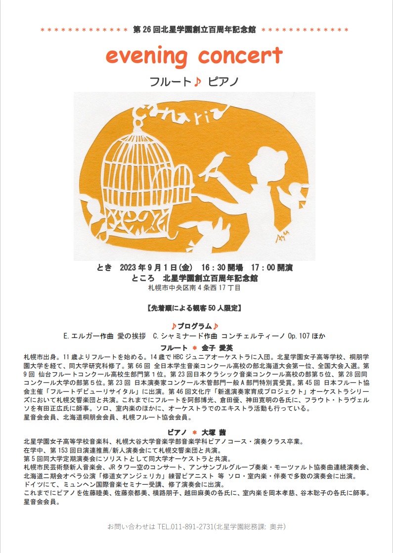 TOP NEWS Web キャプチャ_8-8-2023_13584_ 2023年08月08日 NEWS一覧 2026年 学園新年礼拝を行いました2026.01.06 学校法人北星学園におけるカスタマーハラスメントに対する基本方針を策定しました2025.12.17 第26回北星を学ぶ集いを開催しました2025.10.28 【附属高等学校】第20回定期演奏会を開催しました2025.10.20 【女子高等学校】第55回 定期演奏会を開催しました2025.10.03 アーカイブ 2026 2025 2024 2023 2022 2021 2020 2019 2018 2017