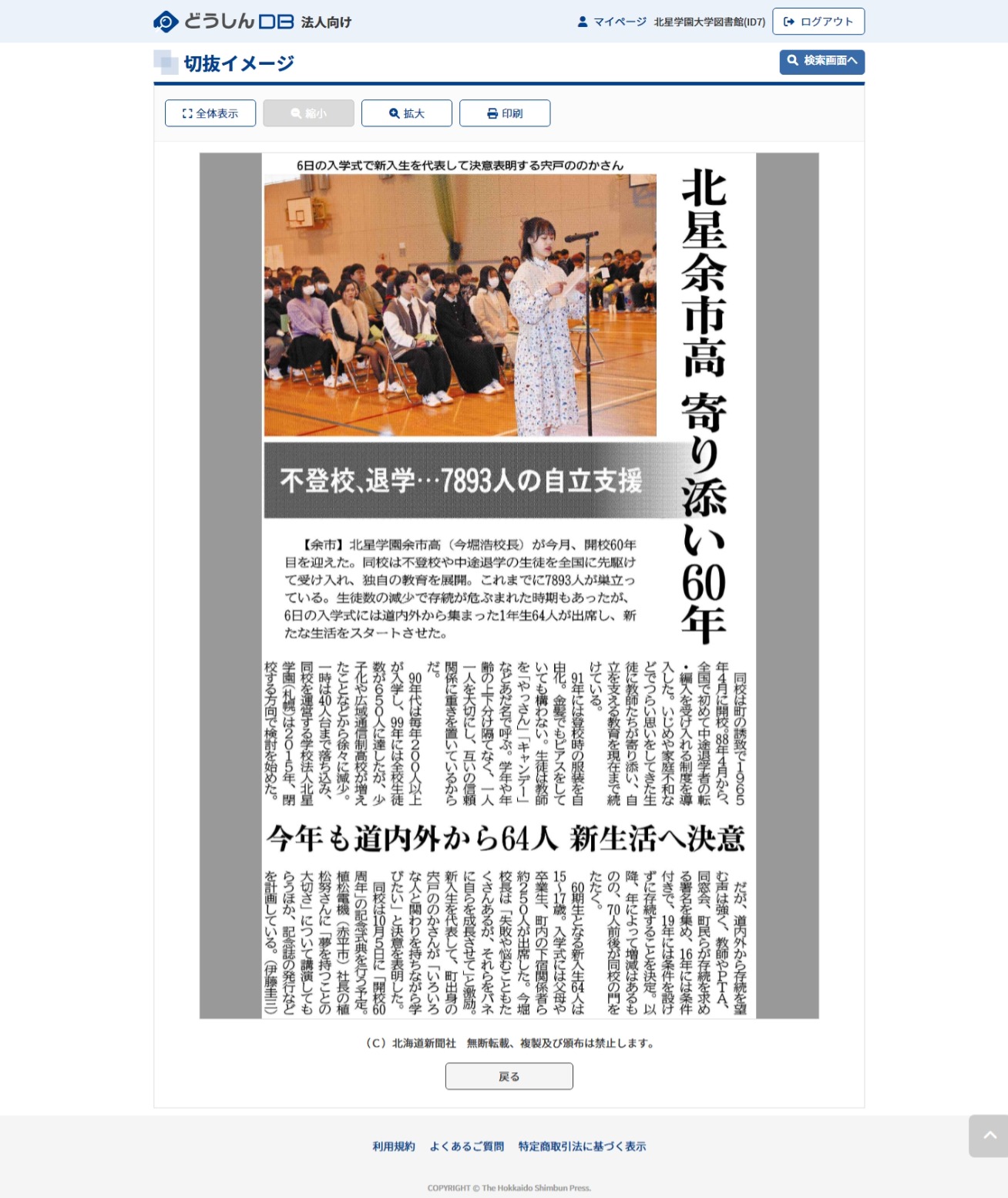 TOP NEWS 余市高入学式2024 2024年04月25日 NEWS一覧 2026年 学園新年礼拝を行いました2026.01.06 学校法人北星学園におけるカスタマーハラスメントに対する基本方針を策定しました2025.12.17 第26回北星を学ぶ集いを開催しました2025.10.28 【附属高等学校】第20回定期演奏会を開催しました2025.10.20 【女子高等学校】第55回 定期演奏会を開催しました2025.10.03 アーカイブ 2026 2025 2024 2023 2022 2021 2020 2019 2018 2017